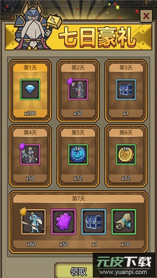 连续登录七天,每日可领取钻石、史诗英雄、装备等多样丰厚奖励。