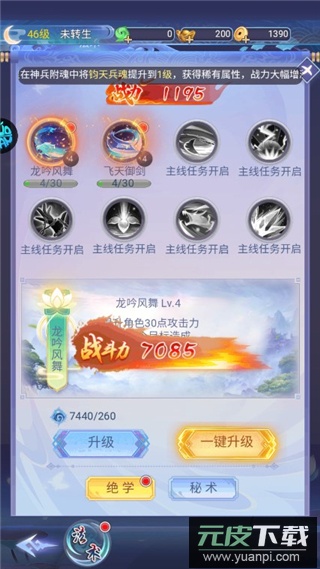 1、仙器祝福:使用仙器进阶丹可增加祝福值,祝福值满后自动提升一星,达到十星后可进行进阶,解锁新的仙器外观;每次进阶都会为仙器与主角带来大量属性增益,且所有仙器外观共享该进阶属性。