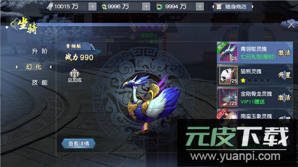 3)幻化坐骑激活后,可通过消耗该坐骑碎片进行升星,从而显著提升战力。