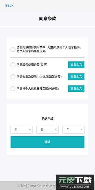 3、阅读并勾选同意全部协议条款,设置年龄信息后确认进入下一步;