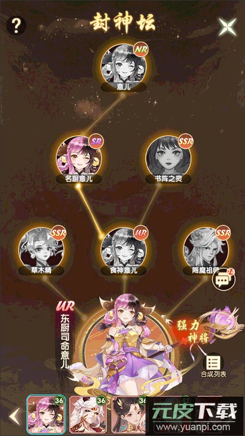 对于新手而言,初始赠送的意儿是优先推荐培养的对象。该角色成长路径清晰,前期易于提升至UR品质,后期更可通过封神坛进阶为神将东厨司命意儿,实力出众。
