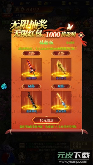 3、内置超值福利,包含0.1折充值、无限抽奖与红包活动;