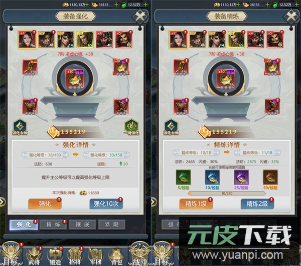 消耗铜钱可强化装备,提升基础属性;