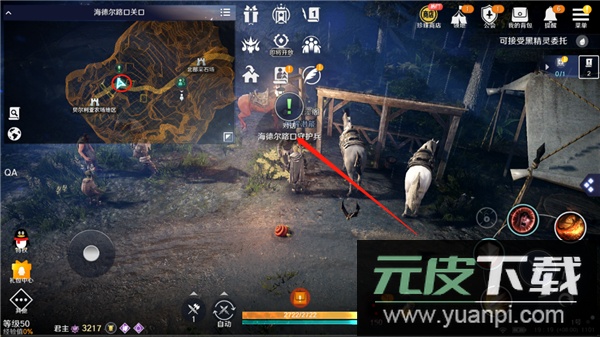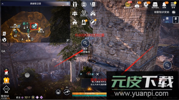 到达关口后,移动至红色圆圈标记处,与路口守护兵交谈。