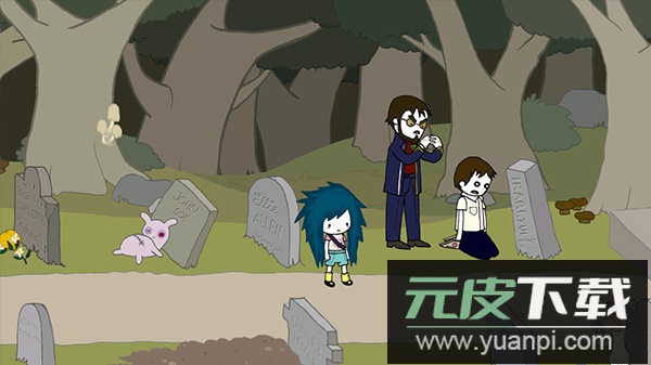 游戏采用独特的手绘风格二维画面,色调明亮且带有童趣感。这种画风与作品的黑暗幽默形成鲜明对比,带来特别的视觉体验。人物与场景设计既充满稚拙趣味,又渗透着怪诞气息,贴合游戏整体的荒诞讽刺氛围。