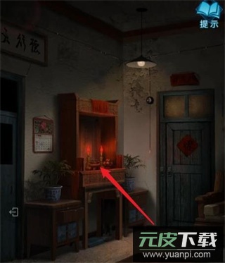 10、查看左侧神龛,取走上面的【符咒】。