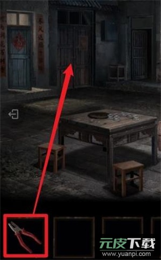 9、在院子大门上使用【老虎钳】,剪断锁链打开大门。
