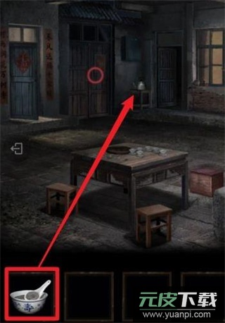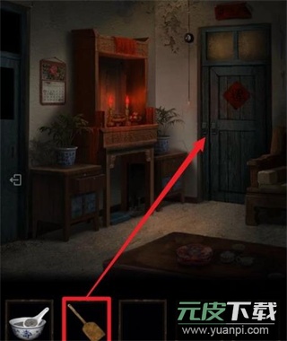 4、用【香灰铲】撬开右前方的门,进入院子场景。