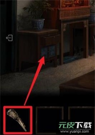 8、回到客厅,用【钥匙】打开神龛右侧的柜子,取出【老虎钳】。
