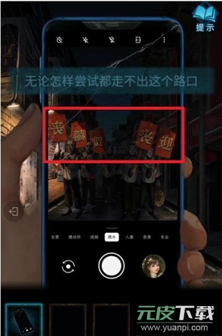 3、前往最左侧无人的街道,使用手机观察环境,获得文字线索:丧、帧⒑亍⑸ァ⒂