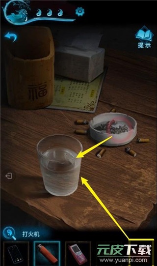 23、返回店门口触发剧情,再次点击桌子,把烟灰倒入水杯,用【红盖头】蘸取烟灰水,得到【浸水盖头】。