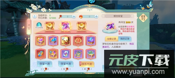 2、寻宝系统中收藏了多种珍贵道具,消耗寻宝币即可进行抽取;