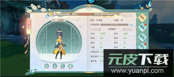 1、通过角色面板查看各项属性,并借助境界突破、脉络激活、转生修炼等方式提升战力;