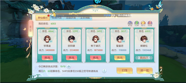 3、开放群仙擂台、试剑大会等玩家对战玩法,可与真实对手切磋较量;