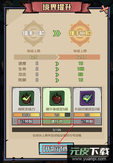 5、主角可进行境界提升,完成指定的提升任务后,即可一键试炼升阶,提高角色阶级并大幅增强战力。