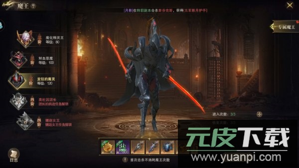 1、专属魔王每日可挑战3次,每20分钟恢复1次机会,每日最多恢复3次;