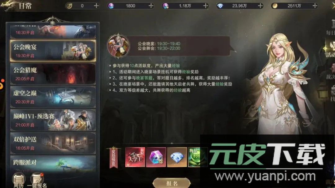 加入公会活动:公会举办的晚宴与舞会是重要的经验来源;晚宴期间可挂机获取经验,参与答题环节并根据排名领取奖励;邀请其他玩家共舞时,双方等级差距越大,获得的经验值就越多。
