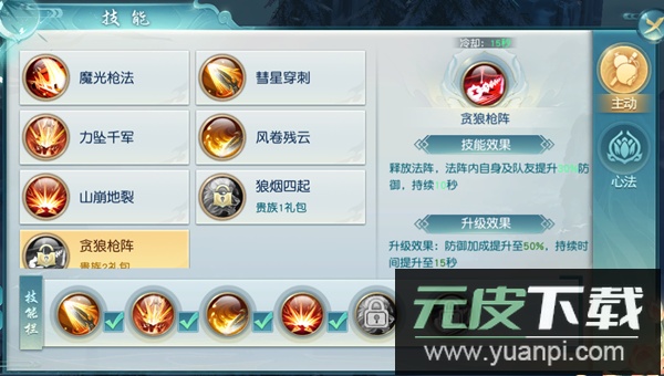 基础技能随主线任务开启,使用特定礼包能对技能进行强化与提升。