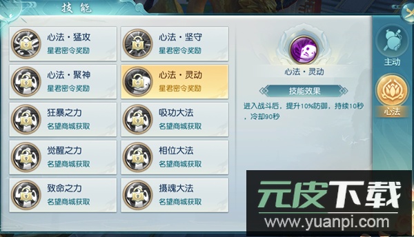 这类技能自动生效,可通过名望商城兑换或完成星君密令等途径获取。