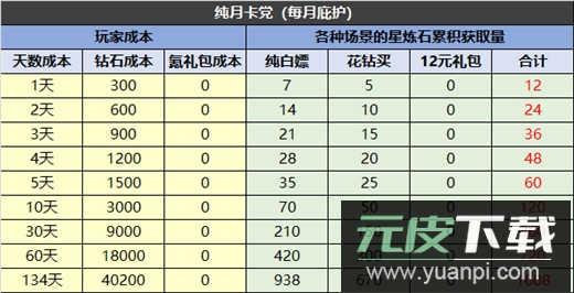 纯月卡玩家,攒满一轮资源大约需要134天。