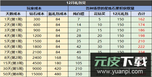 若每周购买12元礼包,钻石每日买满,并完成所有任务,则可在50天内轻松完成一轮积累。