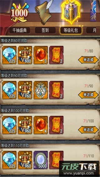 升级与通关赠送十连抽与五星英雄自选卡;