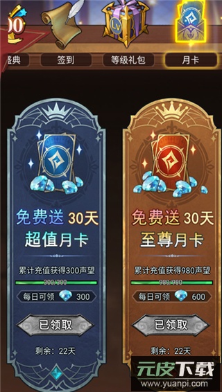 购买月卡可每日领取钻石;未购买月卡的玩家每日也可免费获得20钻石。