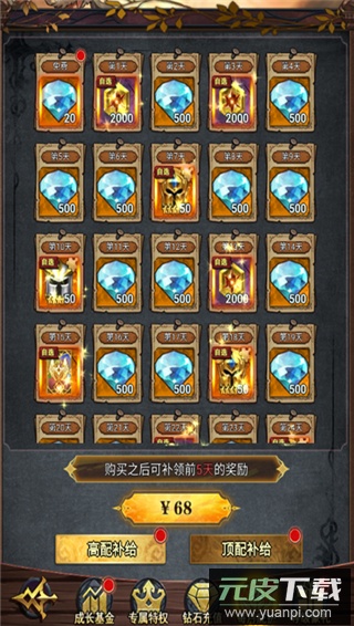礼包商城每日可免费领取钻石,每周与每月也有免费钻石可领。
