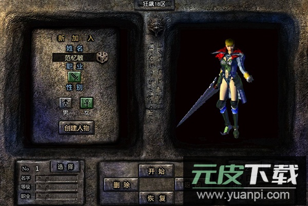 进入服务器后,首先创建角色,设定好名称与性别等信息,即可正式踏入传奇世界。