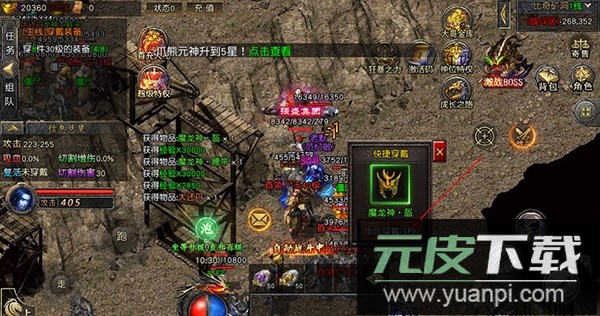 击败怪物会掉落各类装备,使用一键穿戴功能可迅速提升角色战斗力。