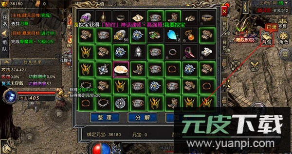 背包满载时,可将多余装备进行回收,换取元宝与经验值,同时腾出背包空间。