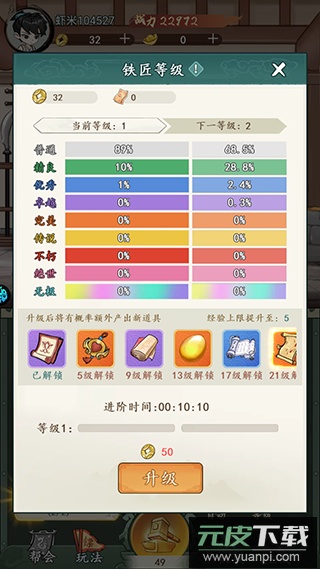 3、通过出售装备得到的铜钱,可以用来升级你的锻造工作台;