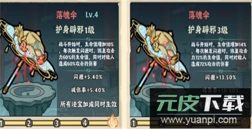 法宝等级至关重要,每提升5级,其技能等级便会增加1级;当法宝升至4级时,可解锁全部4个被动技能,不同法宝的被动效果各异。(所有装备法宝的加成效果同时生效)