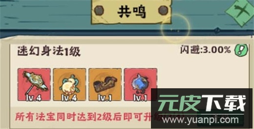 收集齐特定组合的法宝后,可激活共鸣属性;当组合内所有法宝均达到一定等级,共鸣属性还能进一步升级。
