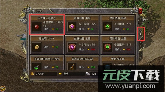 游戏商城内支持使用元宝购买限定数量的火龙珠。
