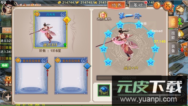 侠客进阶则需要使用进阶丹,每次进阶都会大幅提升属性与战力;进阶丹同样来源于侠客酒馆或试炼副本。