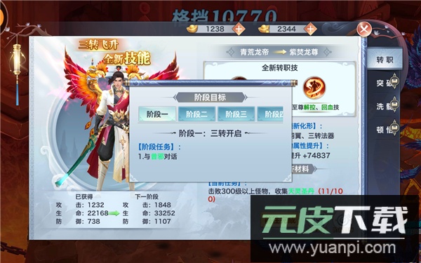 转职简介:每个职业设有六个转职阶段,例如龙将的路径包括白圣龙魂、青荒龙帝等,转职是角色成长的关键环节。