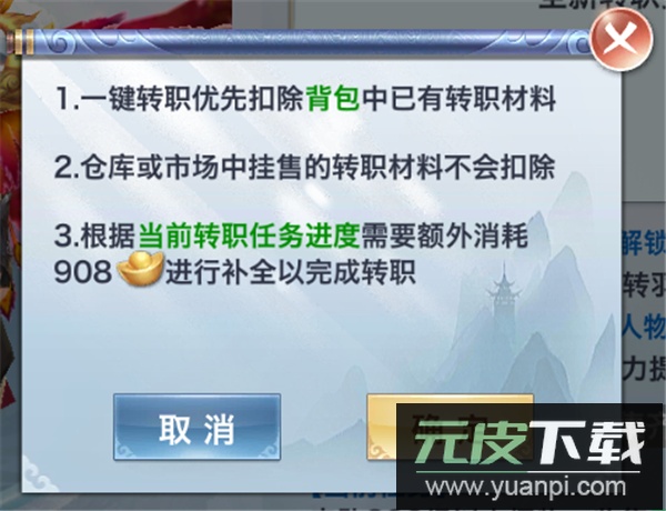 若觉得转职过程繁琐,系统也提供一键转职功能,但需付出相应代价。