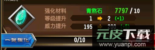 强化时,可逐级使用材料提升,也可在左侧选择所需资源一键升至满级;等级达到上限后,便可点击炼制按钮进入下一阶段。