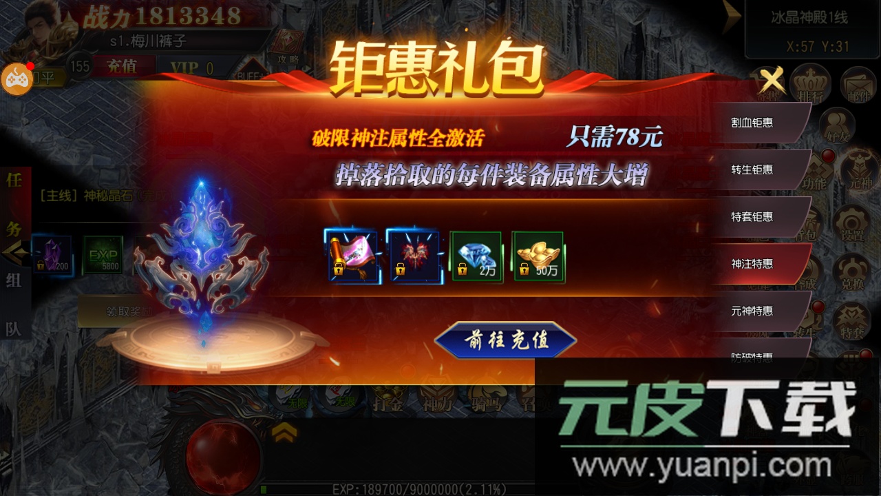 5. 现代装备外观新颖,需通过尊贵会员充值进入专属地图获取,地图采用大极品玩法,掉落装备随机生成极品属性,不同地图极品属性范围不同,充值越高获得极品属性的几率越大;