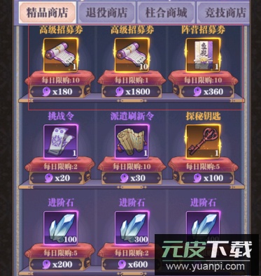 观察商品定价,通常仅有高级招募券与阵营招募券显示折扣优惠,其余物品按原价出售,玩家可根据自身需求酌情购买。