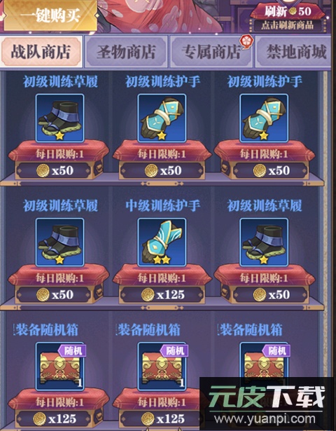 2、战队商店:角色等级达到18级后开放,每日零点自动刷新货品,玩家也可消耗战队币手动刷新以寻找心仪装备。