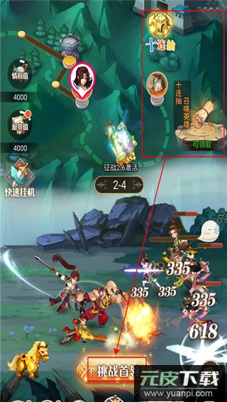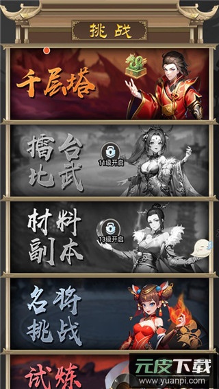 进入游戏即可开启关卡挑战,达成指定目标便能领取免费十连召唤券,轻松获取五星武将;战斗过程中武将自动出击,玩家可调整对战倍速,将敌方全部击败即为胜利;挂机玩法同样能收获丰厚资源,已通关的关卡越多,挂机收益越高;通过闯关积累的材料可用于提升武将实力,例如装备强化、等级突破与星级晋升,显著增强属性后推图更为顺畅;游戏还设有千层塔、擂台比武与多种副本挑战,持续带来新鲜体验。