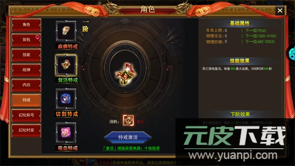 佩戴者可在阵亡后原地复活,恢复最大生命值的45%,该效果冷却时间为540秒;