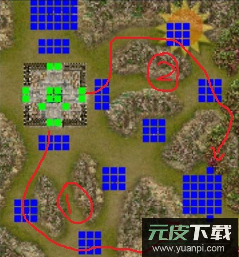 本关重点考验队伍的输出能力。第二回合刘感阵亡触发剧情,目标转变为坚守至秦王入城。第四回合李世民率主力抵达。前十回合的核心任务是守城与清剿敌军,不可出城。建议派遣一人驻守红色方格位置守卫正门,推荐使用李世民或令箭枪兵,其余人员向左及左下靠拢,提前施加强行状态,为第十一回合出城做准备。蓝色标记区域会出现无限复活的破甲副将,只需避免驻守红色方格的单位将其击杀,令其在城门处停留即可。红色标记区域各设有一处伏兵。本关关键角色为刺客气侯君集,他可直接潜入下城消灭医师。此处有一个技巧:下城外的首领可等待侯君集进城引发伏兵后再击杀,避免重复作战。上城外的首领则需先击败才能触发城内伏兵。清理完下城后立即出城消灭小薛。上下城均清除完毕后,城门处的士兵不再复活,下城部队可向上清剿。全灭敌军且无人撤退奖励祝融巾。二周目全灭通关奖励柴绍成长点,拥有皮肤可额外获得两点。