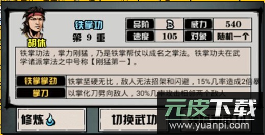 特性:铁掌掌劲使敌人难以招架与闪避,并有15%概率引发双倍暴击;掌刀效果则有30%几率同时攻击相邻两名对手。
