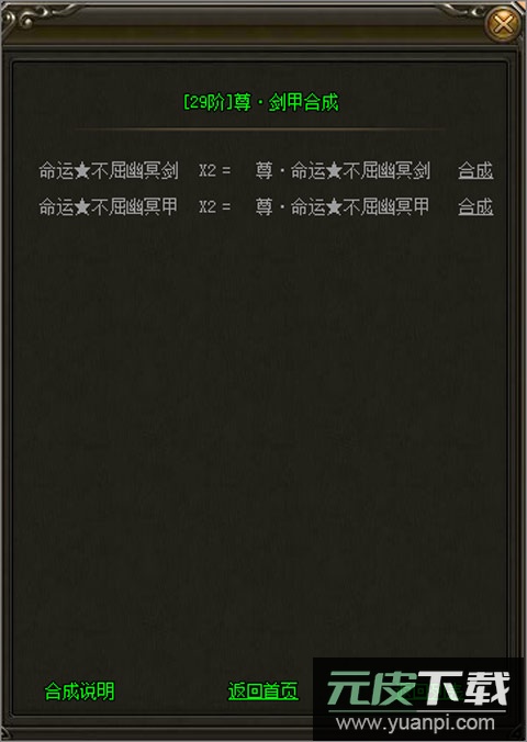 合成需背包中放置两件相同阶位的装备,武器与盔甲要求29阶以上,首饰要求33阶以上。满足条件后,合成项将显示为绿色文字,点击【合成】即可进行锻造。