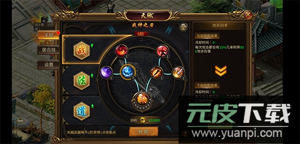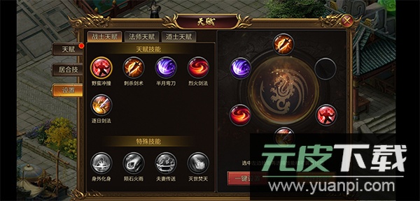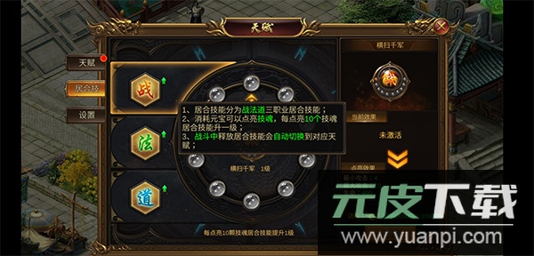 游戏内天赋分为战法道三种类型;