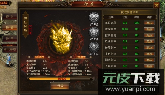 与同类传奇游戏相似,本作设有神兵系统,其获取途径相对亲民,大多数玩家均可通过持续参与游戏活动逐步收集,这正是传奇游戏的独特魅力——所有装备皆由战斗产出;完成日常任务与各类活动,便能取得神兵并进行进阶。