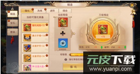 1)角色达到60级后开放,消耗银两对装备进行强化,直接提高基础属性;